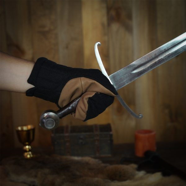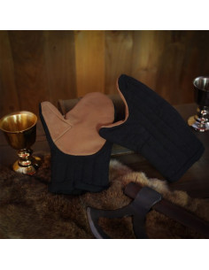 Guanti medievali senza dita in pelle modello Gillian, colore nero