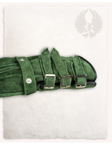 Se stai cercando un'aggiunta autentica e di qualità alla tua armatura medievale, non guardare oltre questi guanti in maglia di pelle. Questi guanti sono realizzati a mano con morbida pelle e anelli in acciaio di alta qualità, intrecciati a mano nel modello 4 in 1. Gli anelli in acciaio di alta qualità non solo forniscono protezione, ma aggiungono anche un tocco autentico e realistico alla tua armatura.
