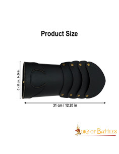 - Forza e solidità: le robuste piastre in pelle sono rivettate con aste in ottone antico, fornendo una costruzione solida e affidabile. Questi guanti sono progettati per resistere ai rigori della battaglia e all'usura costante.