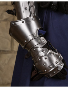 Rafforza le tue mani con i guanti medievali Balthasar, l'aggiunta perfetta al tuo set di armature! Realizzati magistralmente e rifiniti con una lucidatura impeccabile, questi guanti non solo forniscono una protezione eccezionale, ma aggiungono anche un tocco di eleganza al tuo equipaggiamento da battaglia.