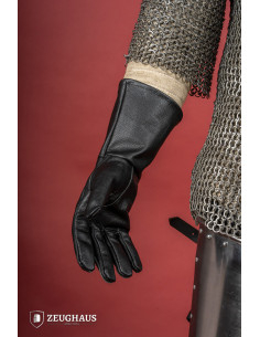 Fai un viaggio indietro nel tempo ai tempi dei cavalieri e delle giostre con questi guanti medievali in pelle nera! Realizzati in pelle di vacchetta di prima qualità e seguendo un modello ispirato alla storia, sono essenziali per ogni rievocatore o appassionato storico che desidera rivivere un'epoca passata!