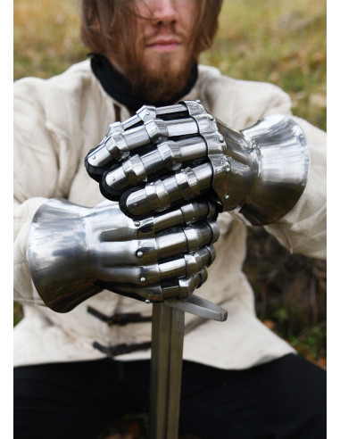 Questi guanti sono perfetti per completare l'armatura di un cavaliere europeo del XIV secolo, ideali per combattimenti leggeri, ricreazioni storiche, LARP o semplicemente come parte della tua collezione di costumi.
