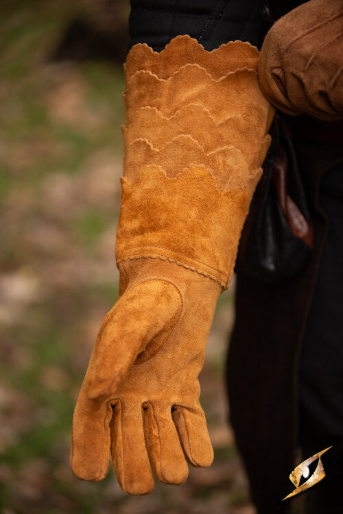 Guanti medievali in pelle scamosciata modello Kondor, colore marrone chiaro
