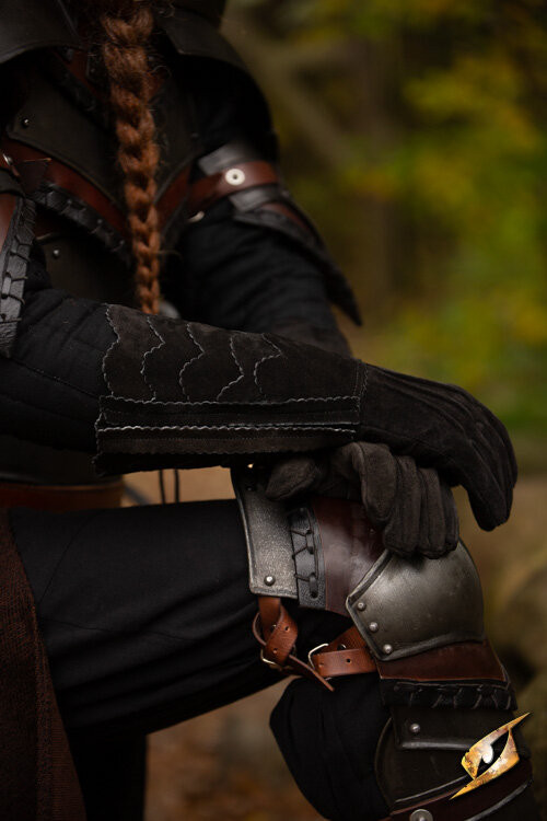 Guanti celtici in camoscio marrone, chiusura con fibbia