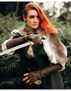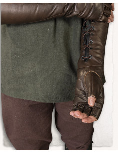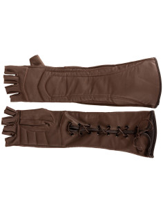 Guanti medievali senza dita in pelle modello Gillian, colore marrone