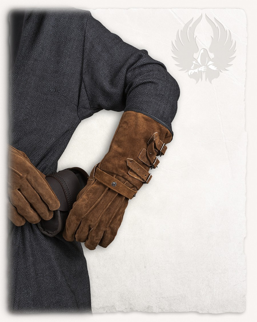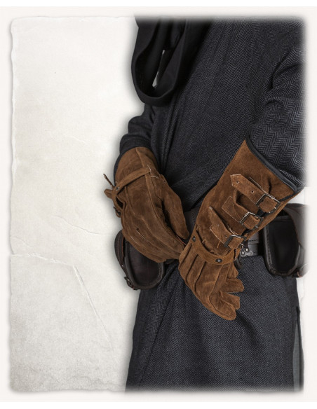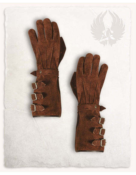 Guanti medievali in pelle scamosciata modello Kondor, colore marrone chiaro