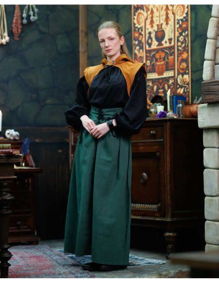 Se sei interessato ad acquistare Gugel medieval in pelle scamosciata modello Galatea, marrone chiaro troverai un indumento che funziona come protezione reale contro sole, vento e pioggia leggera, e che allo stesso tempo completa l'insieme con un'aria autentica e curata. Galatea non è solo un cappuccio, è il dettaglio che trasforma un abbigliamento.
