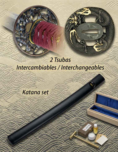 Acciaio al carbonio Katana + caso + box + 2 kit di pulizia tsuba