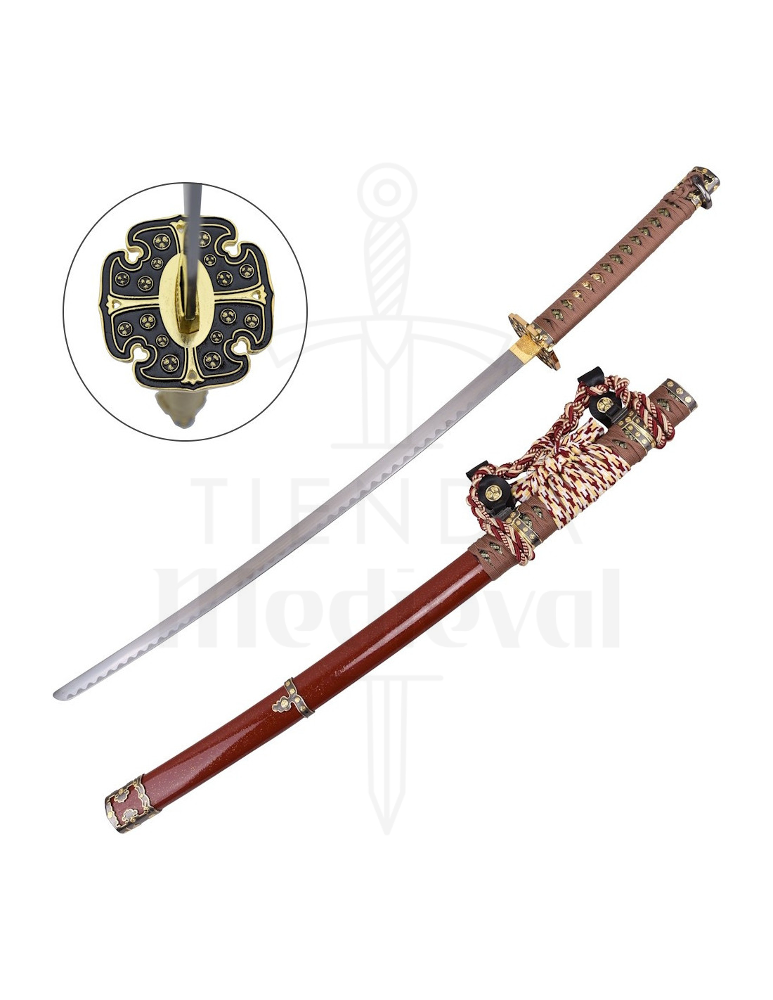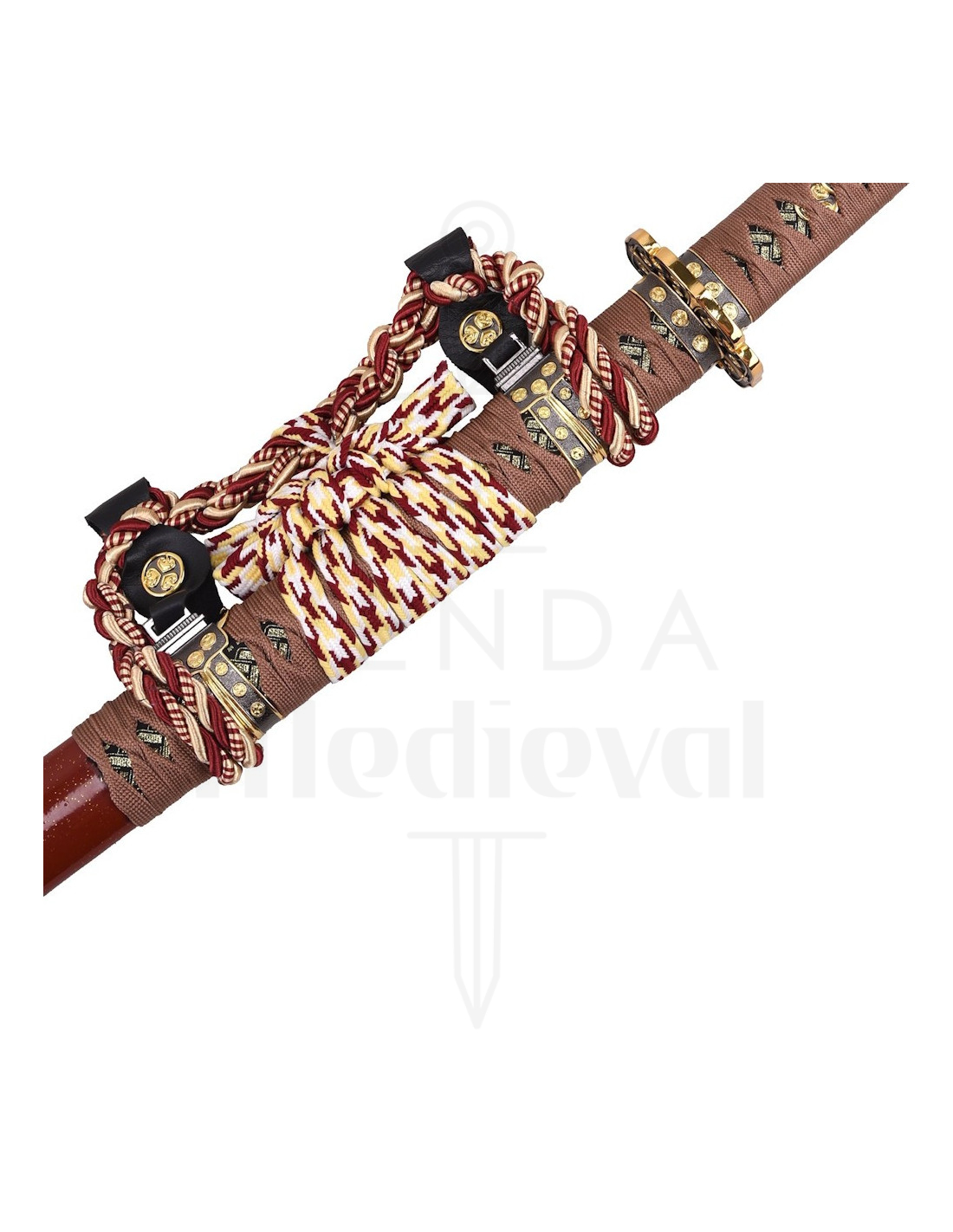 Katana decorativa Giapponese tradizionale con cordino rosso in ottone