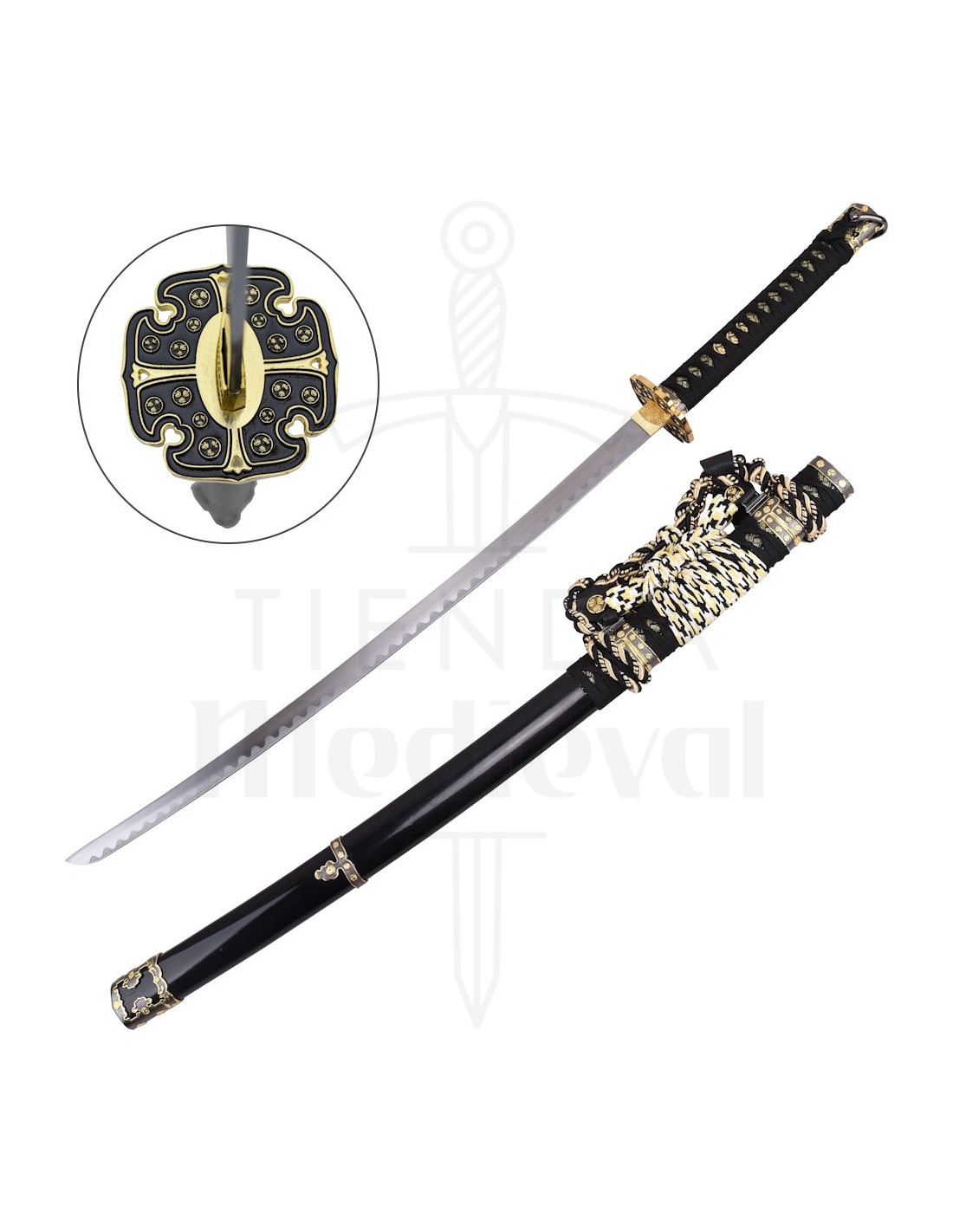 Se cerchi di acquistare la Katana decorativa Giapponese nera con dettagli in ottone per un regalo o per completare una collezione, otterrai un pezzo che combina estetica e tradizione. Ispirata alla figura storica del samurai, porta una connessione con un'eredità culturale riconosciuta per il suo senso dell'onore e della maestria artigianale, senza perdere il tocco ornamentale che rende unica questa katana.
