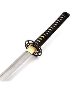 La Bushido Kiku No Gyokuza Katana si distingue per le sue decorazioni uniche: la tsuba e il pomo presentano eleganti motivi floreali. Il design della tsuba, con un reticolo aperto che ricorda un fiore, e i dettagli in ottone invecchiato sul pomello e sul fuchi-kashira, aggiungono un tocco di raffinatezza. Il manico in vera pelle di razza, avvolto con cordino, garantisce una presa comoda e sicura.