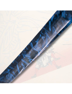 Scopri un pezzo che combina tradizione, funzionalità e bellezza in ogni dettaglio. Questa katana non è solo una spada decorativa, è un'opera funzionale progettata per sorprendere sia i collezionisti che i praticanti di arti marziali. La sua lama è realizzata in acciaio al carbonio 1045, riconosciuto per la sua durabilità ed efficienza, e vanta una finitura che evoca un motivo visivo unico. Questo design non solo cattura l'occhio, ma riflette un'eccezionale precisione artigianale.