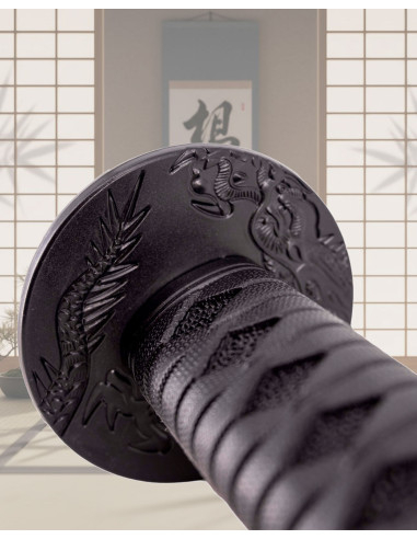 Lama Katana in acciaio al carbonio con fodero, kit di pulizia e tsuba.