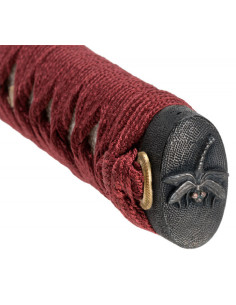 Il tradizionale manico avvolgente in stile hineri maki è realizzato in seta bordeaux, conferendogli un tocco di eleganza e autenticità. Ed il fodero nero lucidato a specchio, in stile kuroro, protegge ed esalta ulteriormente la bellezza di questa katana.