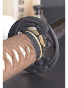 Ma non solo, questa katana si distingue anche per il suo bellissimo tsuba in ferro brunito con il motivo delle tre scimmiette sagge. Quest'opera d'arte non solo gli conferisce un tocco estetico incomparabile, ma ne rafforza anche la storia e il significato.