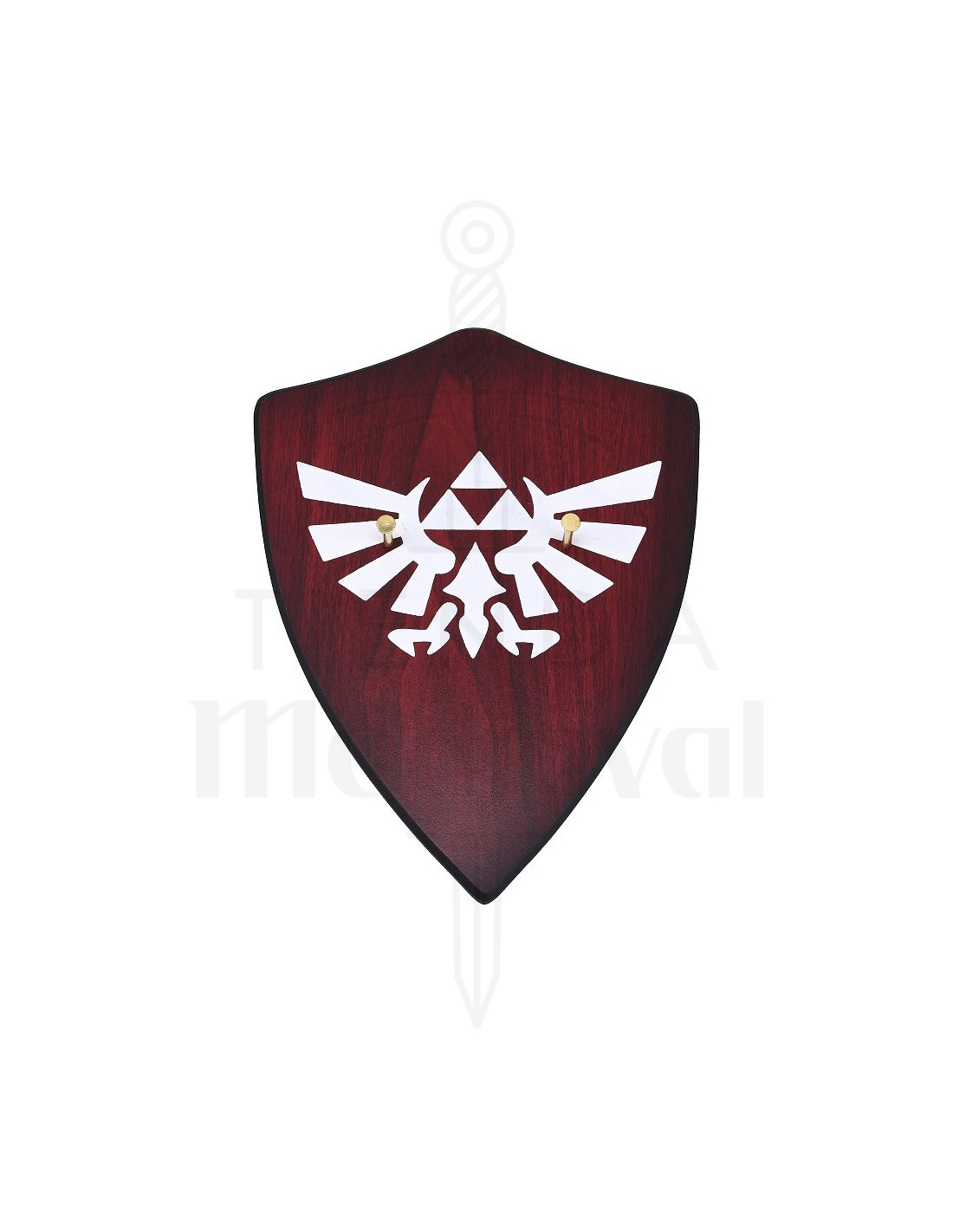 Questo Espositore da parete in legno per la Spada Maestra di Link offre una presentazione elegante e sobria, ideale per chi cerca di mostrare la propria replica con orgoglio. La placca a forma di scudo, in un marrone scuro con venature naturali, porta calore e carattere, mentre il bordo smussato di un tono quasi nero incornicia il pezzo come se fosse una reliquia. Il motivo bianco stilizzato al centro aggiunge un contrasto distintivo, e i piccoli ganci metallici dorati permettono di appendere accessori o fissare dettagli senza rompere l'estetica.