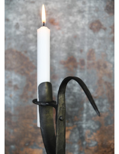 Trasforma ogni pasto o riunione in una festa medievale con la luce morbida e incantevole di questo candelabro da tavolo forgiato a mano. Lascia che tradizione ed eleganza si uniscano nella tua casa con questo pezzo unico di Forge of the North!