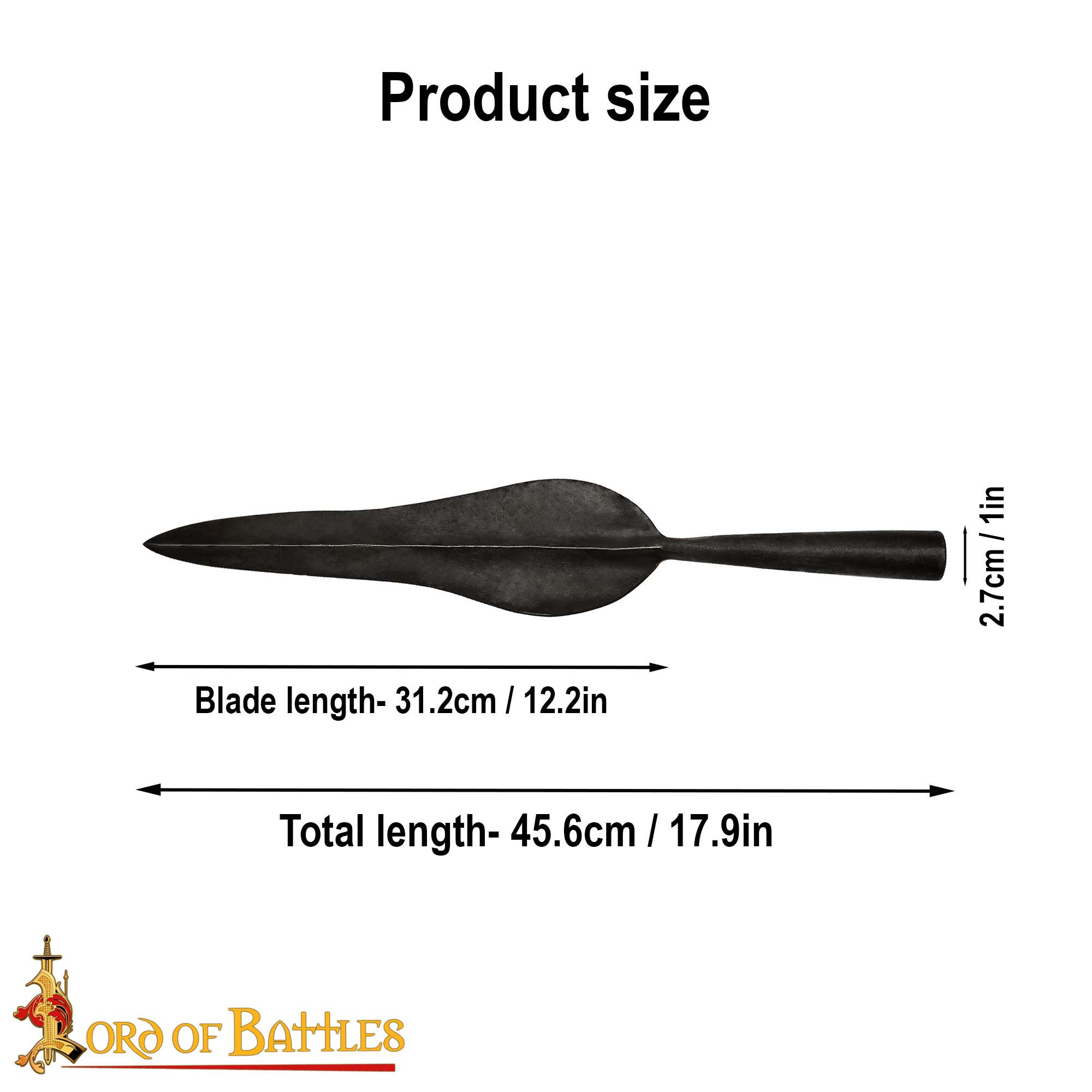 Possiedi un pezzo unico di storia e artigianato con la nostra punta di lancia in ferro forgiato a mano! Con una lunghezza totale di 18 pollici e una lama di 12 pollici, questa punta di lancia non è solo uno strumento formidabile, ma anche un'opera d'arte in sé.