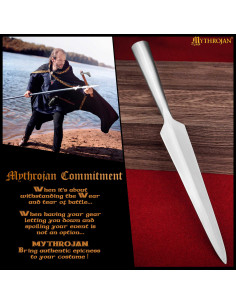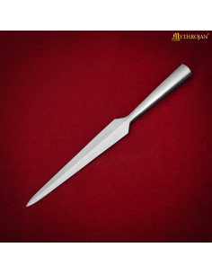 Ogni punta di lancia è forgiata a mano, assicurando che sia completamente funzionale e in grado di assolvere il suo scopo senza deludere. Il suo design affilato non è smussato, il che le conferisce un aspetto realistico, sebbene si raccomandi di non utilizzarla in battaglie ricreative che comportino pugnala reali. Con questa punta di lancia, non ottieni solo un accessorio storico, ma anche un pezzo che può essere il protagonista delle tue prossime avventure o ricreazioni.