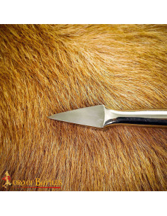 Questa punta di lancia triangolare è stata realizzata con una cura artigianale ineguagliabile a partire da resistente ACCIAIO AL CARBONIO, il che garantisce un'eccezionale durabilità. La punta è affilata per una funzionalità pratica sul campo di battaglia, pronta a svolgere il suo scopo con precisione.