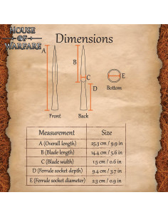 Prenditene cura con olio leggero e conservala in un luogo asciutto per mantenere il suo aspetto e funzionalità. Se desideri comprare Punta di lancia vichinga forgiata a mano in acciaio al carbonio, porterai a casa un pezzo artigianale che combina bellezza rustica, versatilità per la personalizzazione e la sensazione autentica di una reliquia progettata per l'azione.