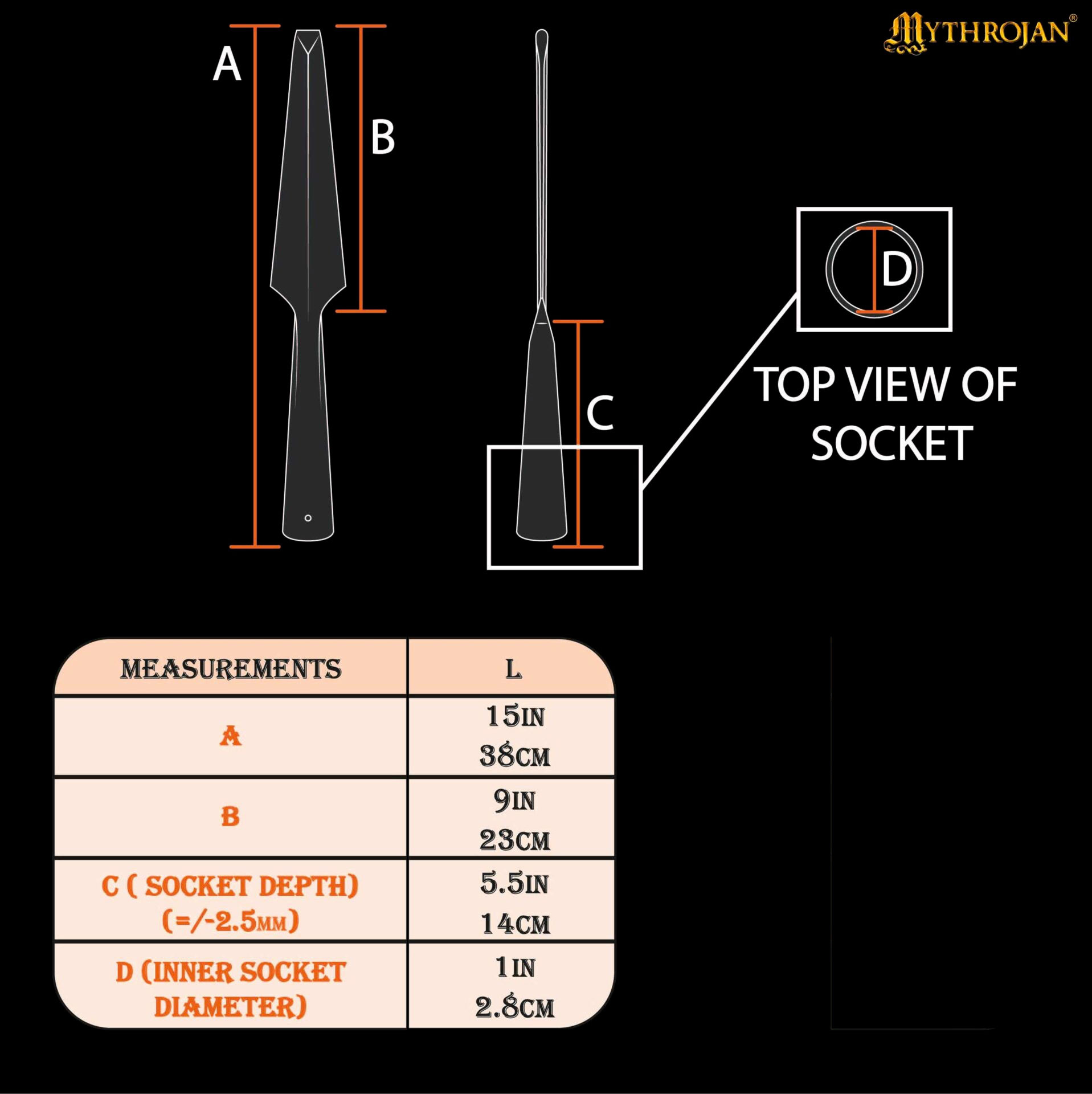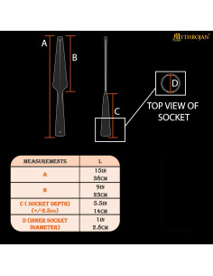 Questa punta di lancia combina l'estetica degli antichi guerrieri nordici con la solidità di un pezzo forgiato a mano, ciascuno modellato da artigiani affinché la tua arma abbia un carattere proprio. La costruzione robusta offre una sensazione di affidabilità in combattimento e allenamento, mantenendo l'equilibrio necessario per manovrarla con fiducia durante tornei e ricreazioni.