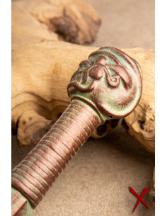 - Pronto per l'azione mortale: nonostante la sua versatilità, questo coltello non dimentica mai il suo scopo principale: l'azione mortale. Quando la minaccia incombe, il Tribal Throwing Knife sarà al tuo fianco per affrontarla con coraggio e abilità. Il suo aspetto in rame dipinto e il design dettagliato sul pomo, simile a un volto, aggiungono un tocco autentico e personale al tuo personaggio.