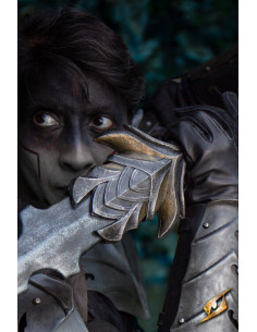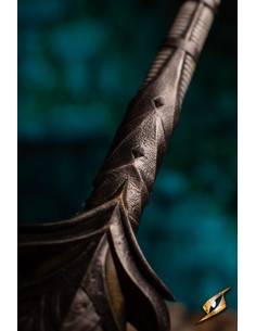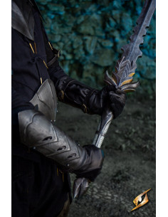 Ispirata agli eleganti elfi delle terre senza sole, questa maestosa spada, conosciuta come Spadone Eventide, ti offre il perfetto equilibrio tra eleganza e brutalità. La sua impugnatura da 11 pollici, escluso lo zigomo a tenaglia, offre un controllo eccezionale, con il bilanciere strategicamente posizionato appena sopra la guardia estesa.