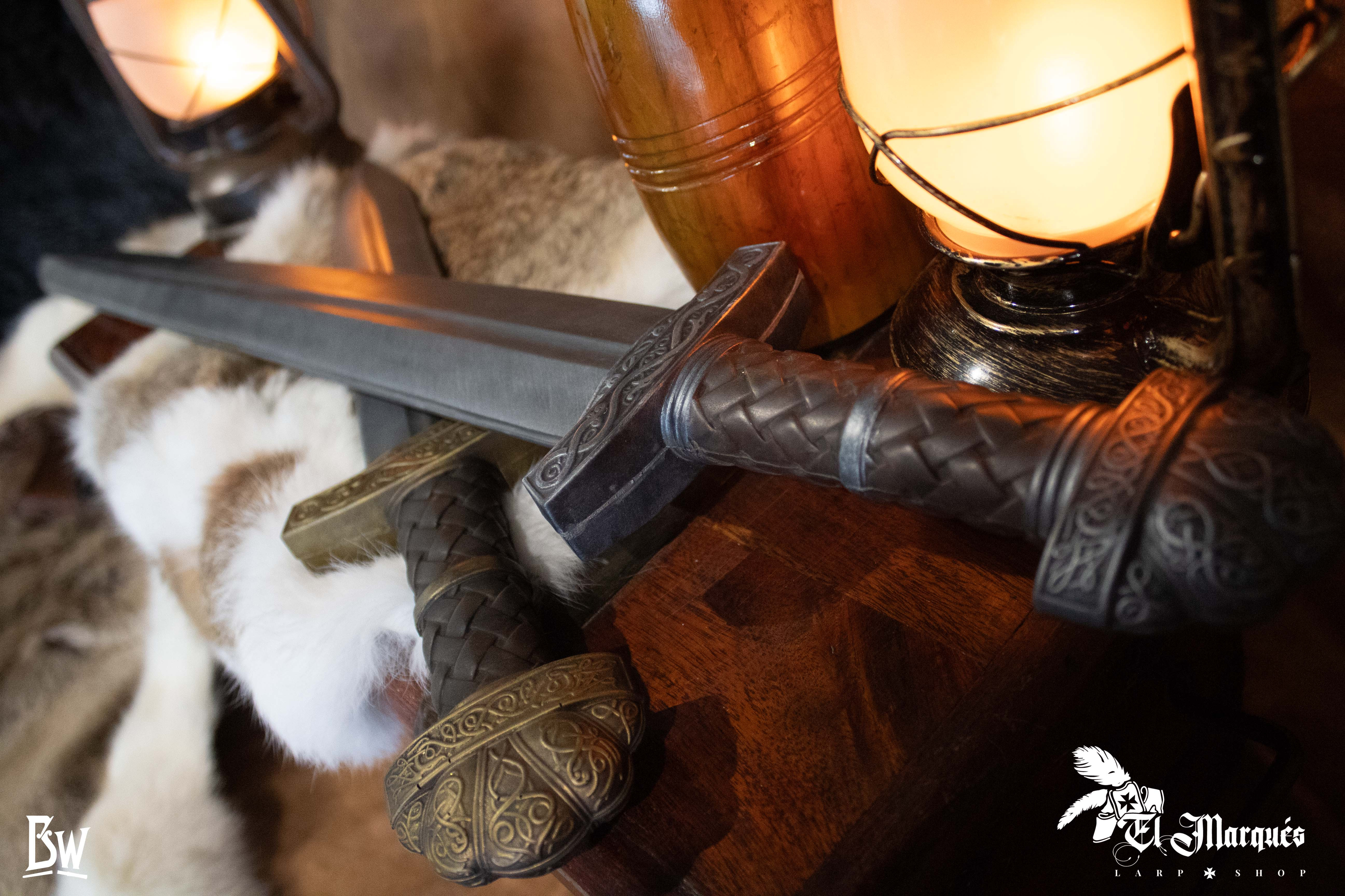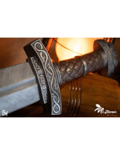 La guardia, con un design ispirato a motivi vichinghi, offre protezione e rinforza l'estetica guerriera. Ogni elemento è stato curato nei minimi dettagli, dalla lunghezza della lama all'armonia tra funzione e aspetto. Inoltre, la sua ambientazione visiva include dettagli come pelli e lanterne antiche, evidenziando l'atmosfera leggendaria che avvolge questo prodotto.
