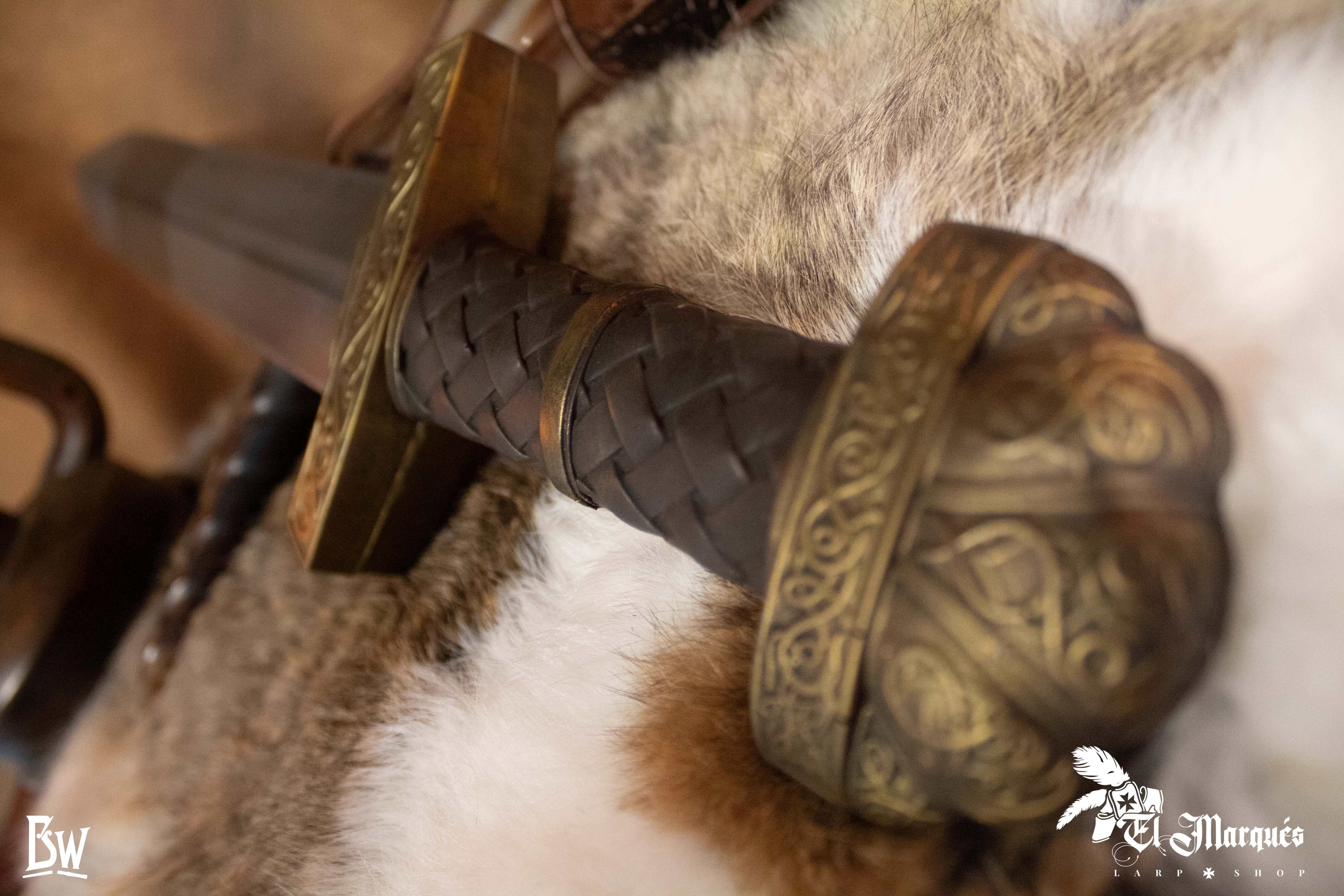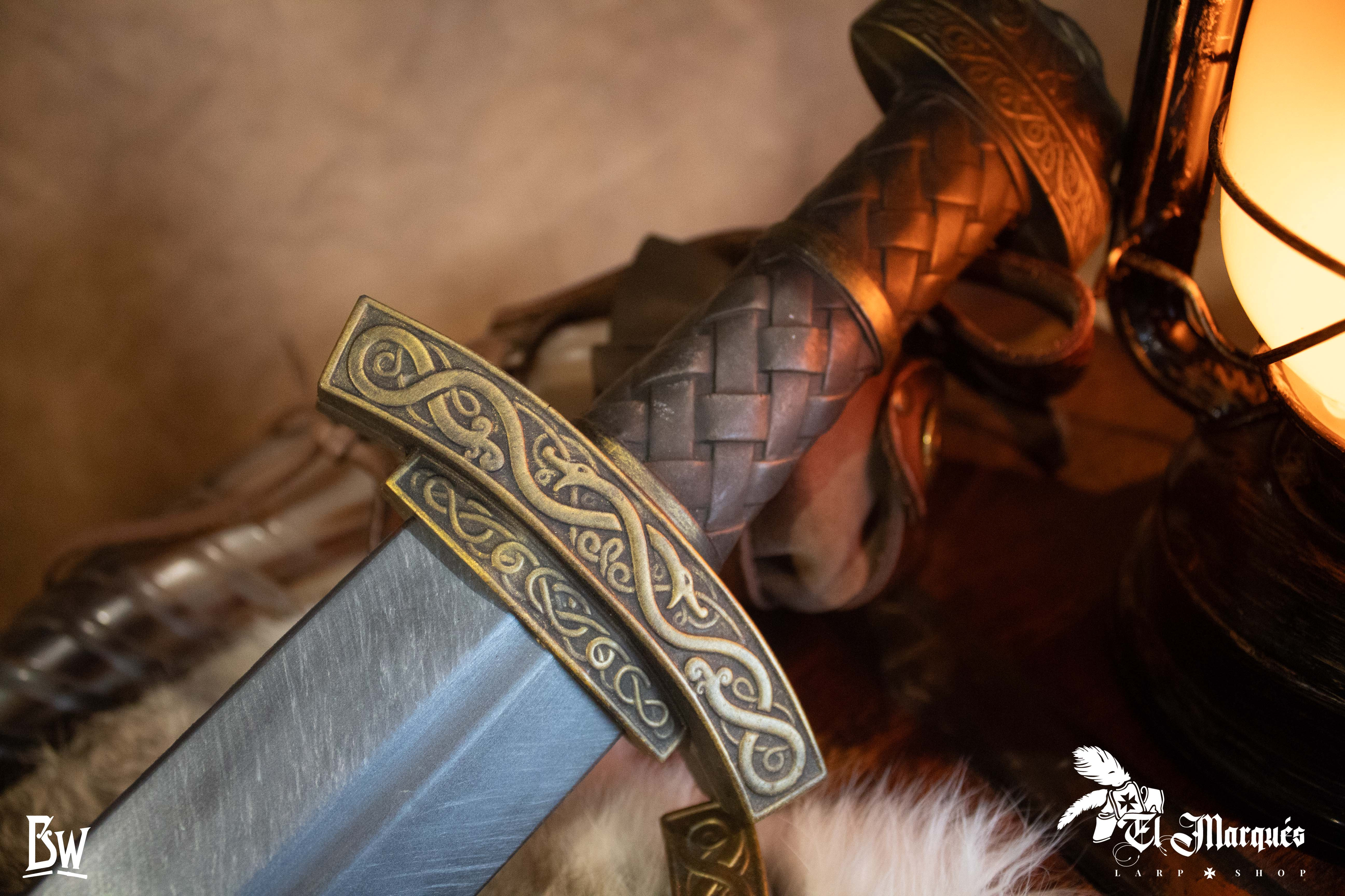 Scopri la daga vichinga lunga Egil per LARP di Broken Wand, l'accessorio essenziale per le tue avventure di ruolo dal vivo. Progettata con schiuma ad alta densità e un nucleo in fibra di vetro, questa daga combina sicurezza e funzionalità in tutte le tue battaglie. Il suo design lungo la rende un'ottima arma di supporto per il combattimento corpo a corpo, mentre la sua robustezza ti permetterà di resistere e bloccare gli attacchi dei tuoi avversari senza sforzo.