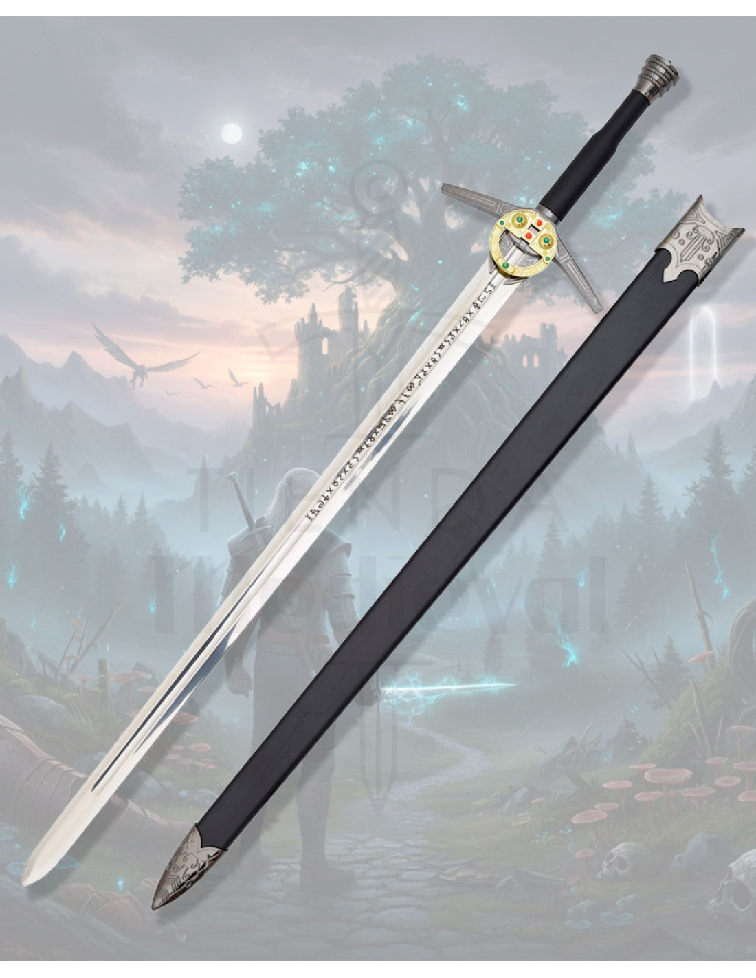 Se desideri acquistare la Spada ornamentale ispirata a quella di Geralt di Rivia, The Witcher, troverai in questo esemplare una combinazione di dettagli visivi, presenza decorativa e finitura pensata per risaltare in qualsiasi collezione.