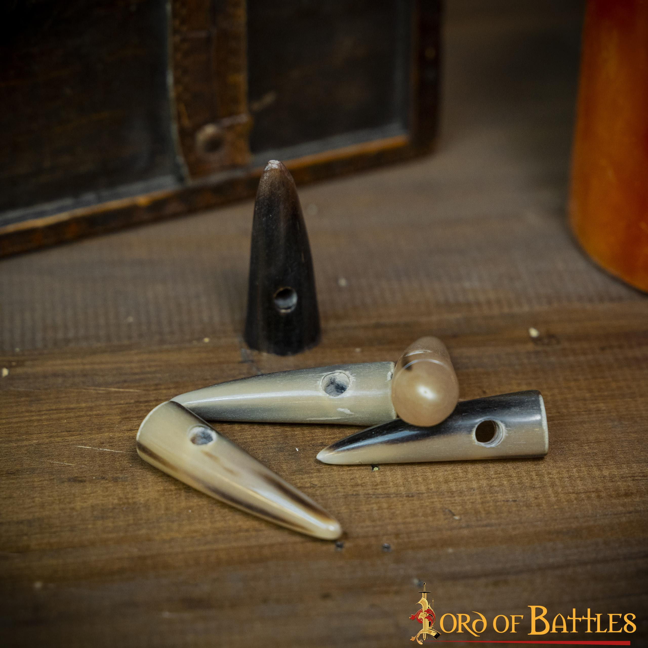 Ogni bottone in corno è accuratamente realizzato da un corno di bue di PRODUZIONE ETICA, che lo rende robusto e durevole. Ognuno ha una lunghezza di ca. 2 pollici. Questi interruttori sono forniti in un set di cinque utility.