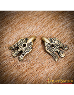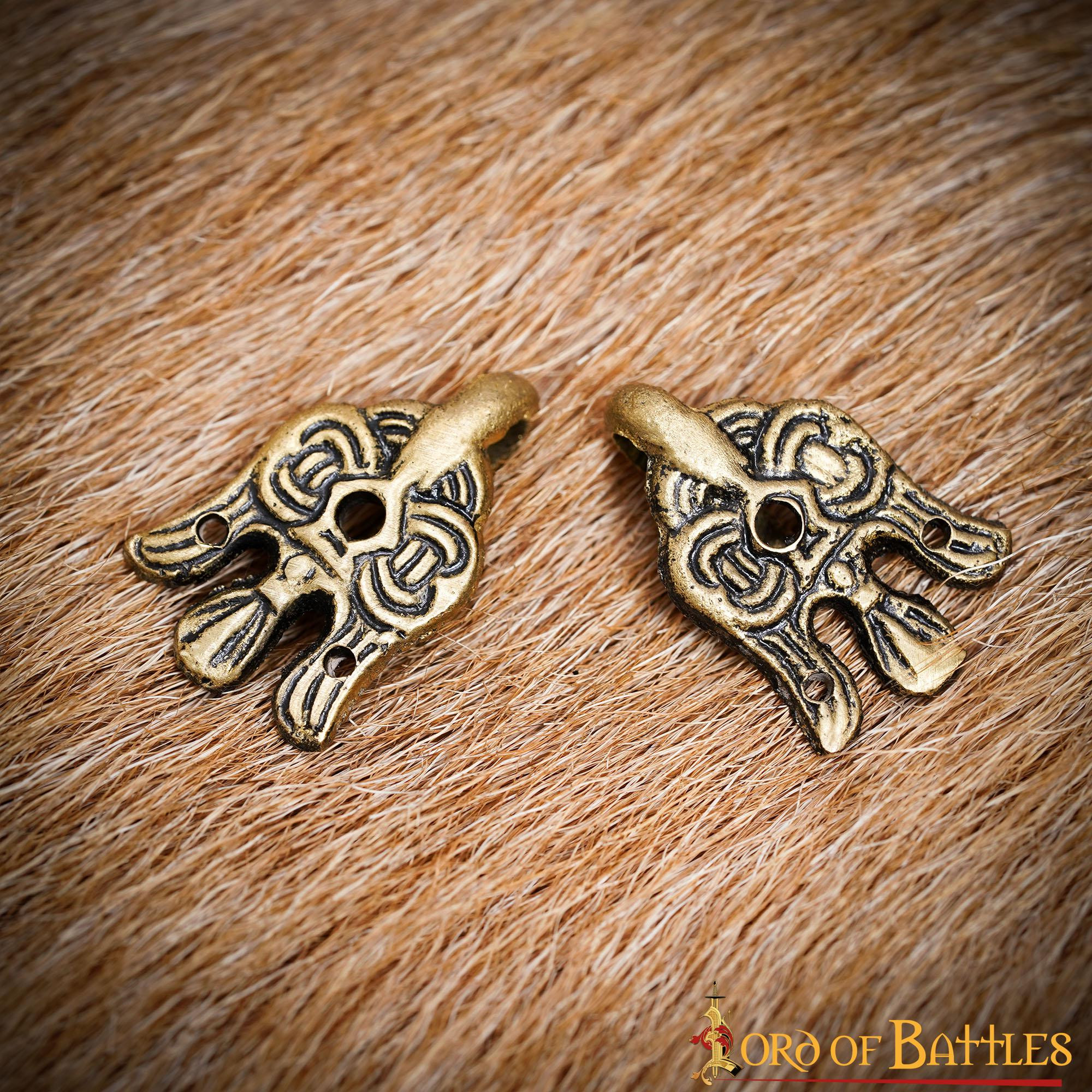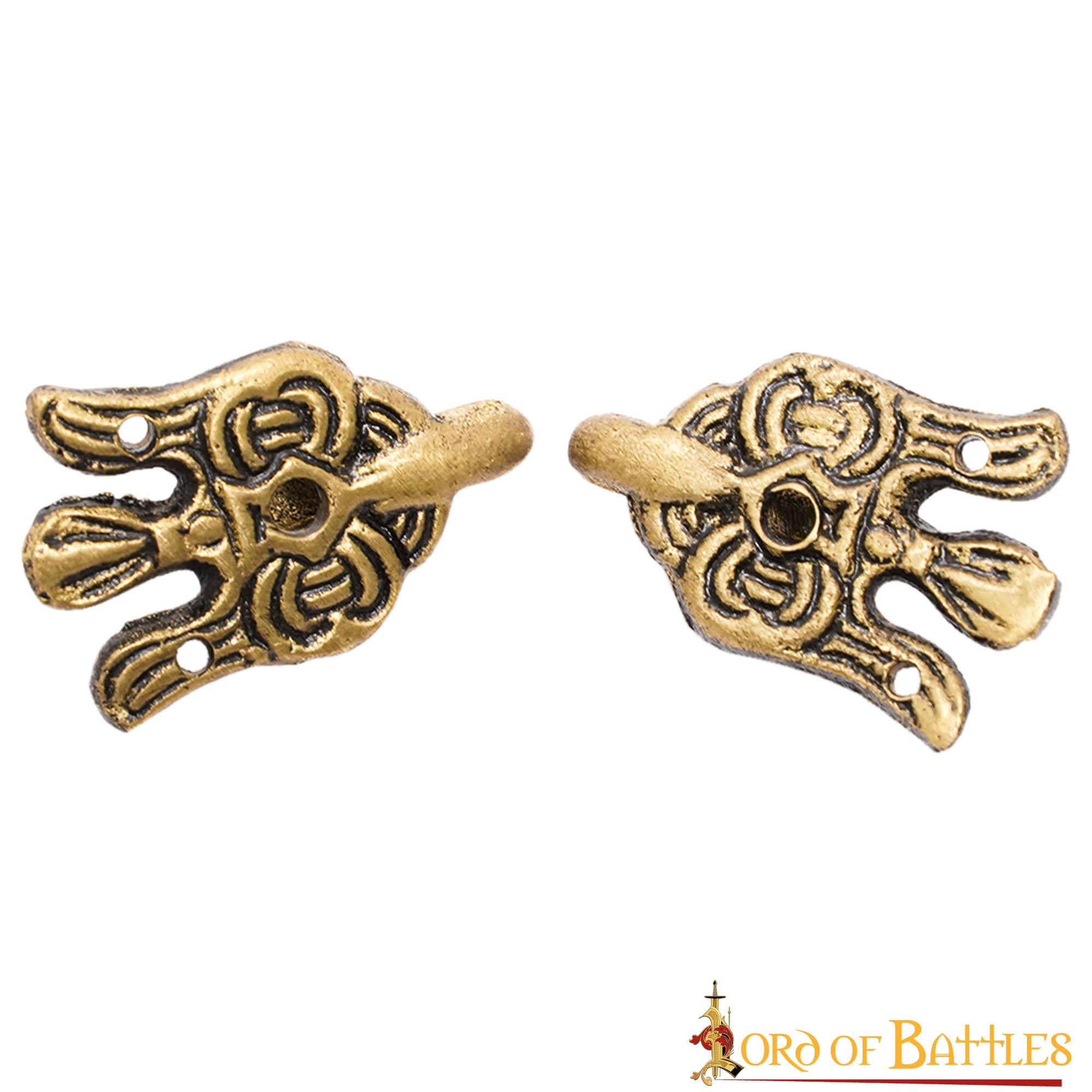 Migliora il tuo abbigliamento vichingo con un tocco di autenticità storica! Presentazione del set di 2 ganci Raven per vichinghi in ottone antico. Se sei appassionato di rievocazioni vichinghe, questi ganci ispirati all'archeologia russa del X secolo sono la scelta perfetta per le tue fasce per le gambe in stile vichingo.