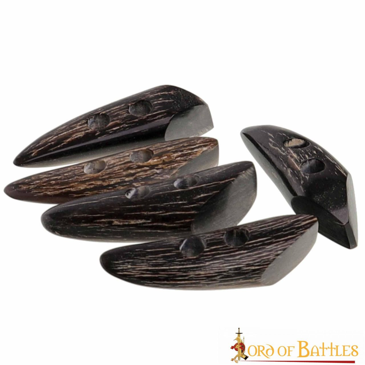 Dai un tocco autentico e duraturo ai tuoi vestiti e alle tue borse con il nostro Set di 5 Chiusure in Corno con 2 Fori! Realizzati dal rinomato produttore Lord of Battles, questi fermagli sono molto più che semplici accessori. Sono la perfetta fusione tra funzionalità e stile, offrendoti la soluzione ideale per le tue esigenze di supporto.