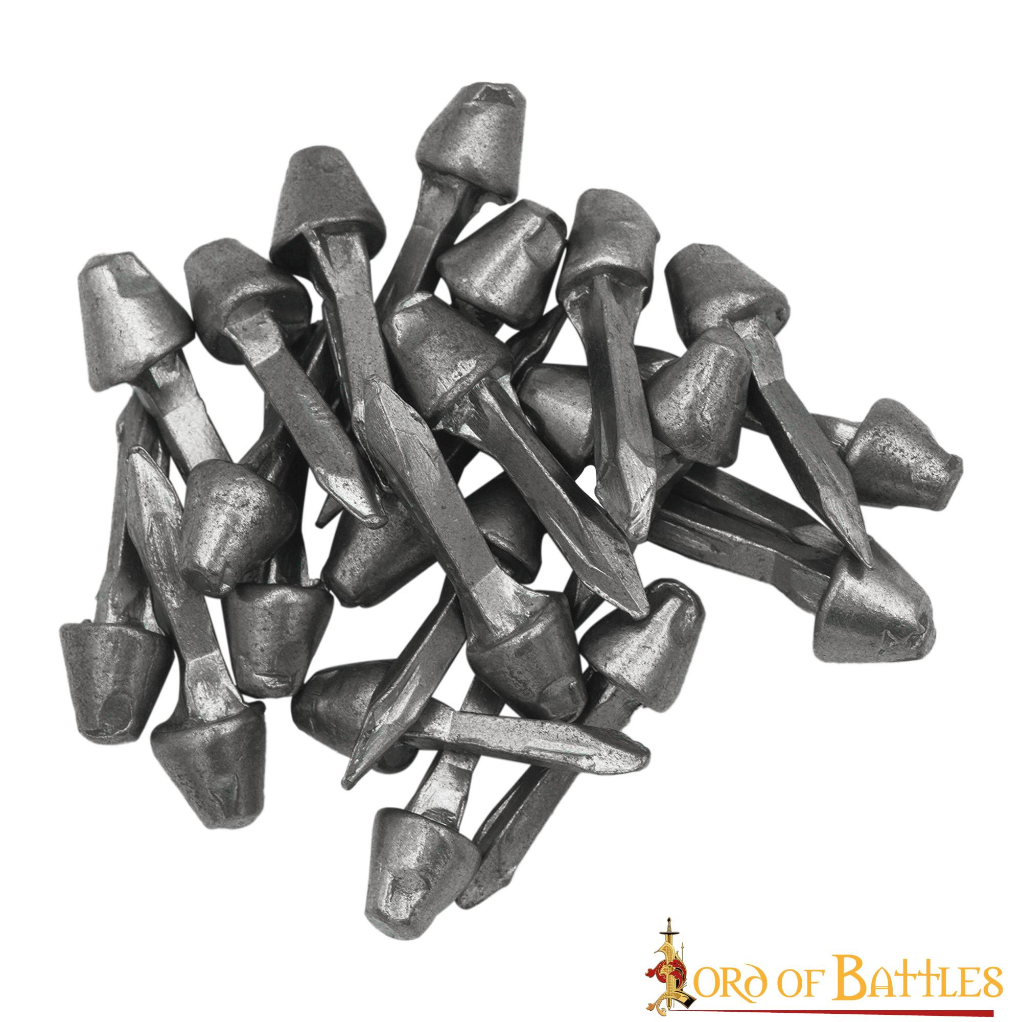 Restituisci forza e autenticità alle tue caligae con questi robusti chiodi romani. Che si tratti di rievocazioni, collezionismo o semplicemente per mantenere le tue caligae in ottime condizioni, questi chiodi sono la scelta perfetta. Non lasciare che le tue caligae si deteriorino, ripristina il suo splendore romano con questi chiodi in acciaio!