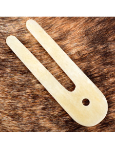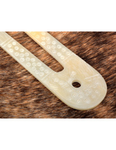 Misurando 10 x 3,5 x 0,4 cm e con un foro di 0,5 cm di diametro, questa replica della lampada originale vichinga è un gioiello di artigianato. Sebbene l'originale fosse realizzato con ossa di balena, la nostra versione è realizzata con cura con ossa di manzo, mantenendo l'autenticità e il fascino dell'era vichinga.