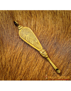 Questo pulitore per le orecchie in PURO OTTONE SOLIDO è progettato meticolosamente, garantendo una migliore costruzione e ornato con un design a nodo celtico. La sua lunghezza totale è di circa 6,5 cm. Questo pulitore per le orecchie è COMPLETAMENTE FUNZIONANTE, ottimo anche per le rievocazioni storiche! Realizzato da Lord of Battles.