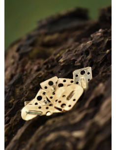 Le piccole piastre sono realizzate in ottone calibro 26 circa e presentano una nervatura centrale. Sono dotati di 5 fori preforati, il foro più grande consente di legarli, cucirli o rivettarli su un supporto, mentre i fori più piccoli sui lati consentono di attaccare le squame l'una all'altra per una maggiore stabilità.