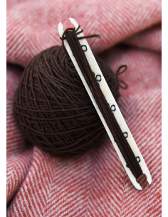 La tecnica di tessitura, popolare nel Medioevo, si basava sull'uso di navette come questa per guidare il filo di trama attraverso i fili di ordito nel telaio. Con questa navetta, potrai sperimentare la soddisfazione di creare i tuoi tessuti, filo dopo filo, mentre ti immergi in un'attività che è perdurata nel tempo.
