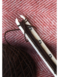 Immagina di avere tra le mani un pezzo unico che collega il passato con il presente, uno strumento che non è solo funzionale, ma anche una vera opera d'arte. Questa navetta in osso, decorata con nodi celtici, è il complemento perfetto per qualsiasi appassionato di artigianato storico.