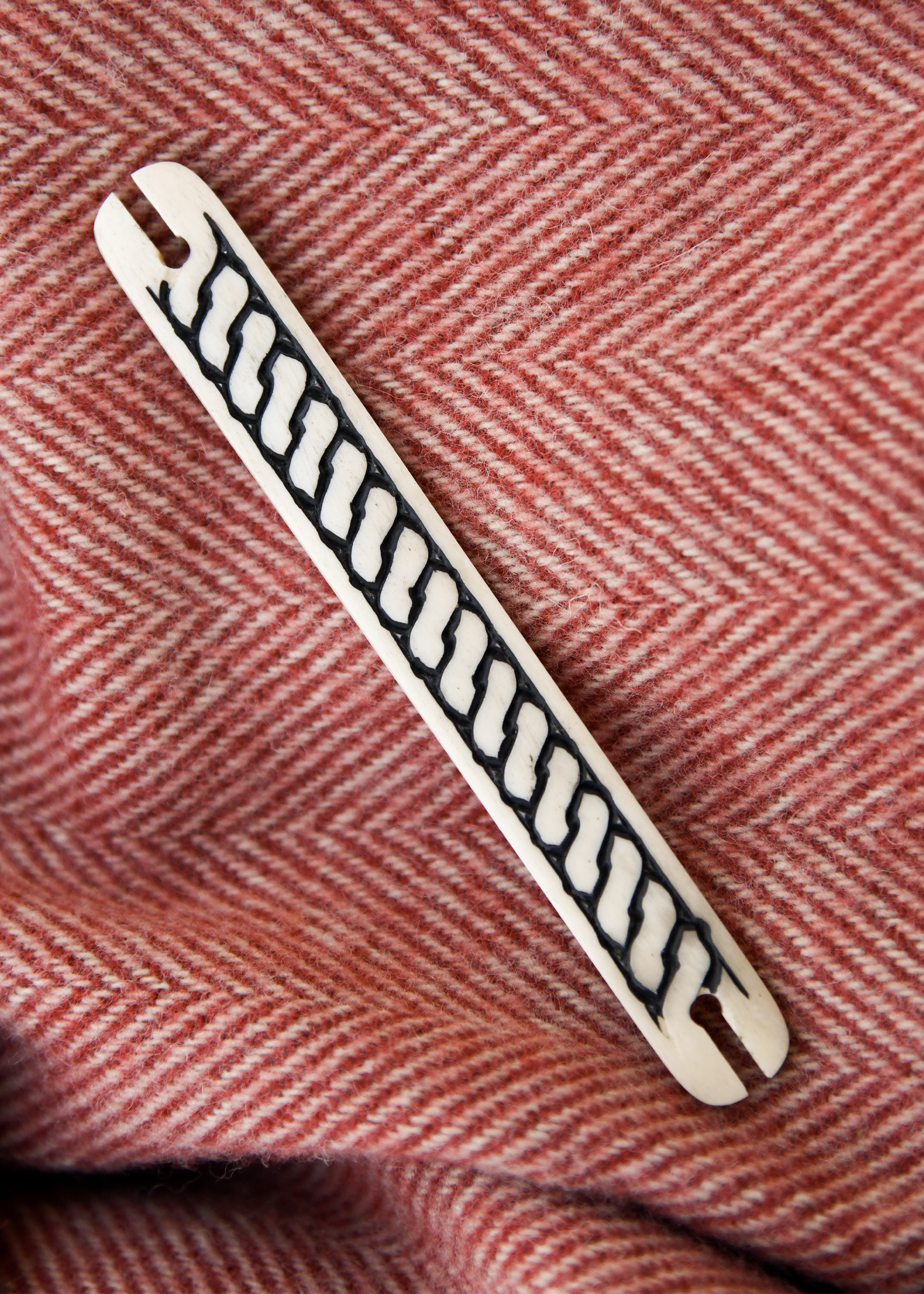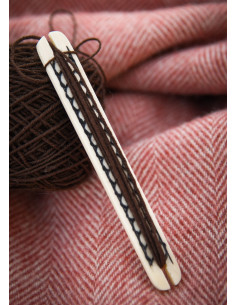 Immagina di avere tra le mani uno strumento che non solo è funzionale, ma ha anche una ricca storia. Questa navetta, realizzata a mano con autentico osso, è un omaggio all'abilità artigianale del Medioevo, dove l'arte di tessere è diventata una forma di espressione e creatività.