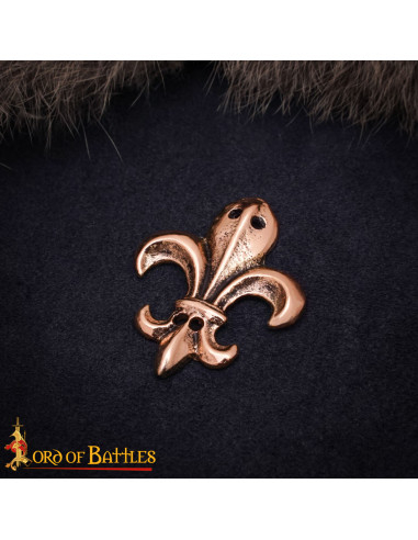 Il tono rame-bronzo con texture ruvida che puoi osservare nell'immagine rinforza quella sensazione di antico, mentre il profilo stilizzato rimane fedele ai motivi utilizzati tra il XII e il XV secolo, quando il fiore di lis simboleggiava autorità divina e lignaggi reali. Questa connessione storica aggiunge significato al tuo uso, sia in ricreazioni fedeli che in creazioni di fantasia con DNA medievale.