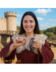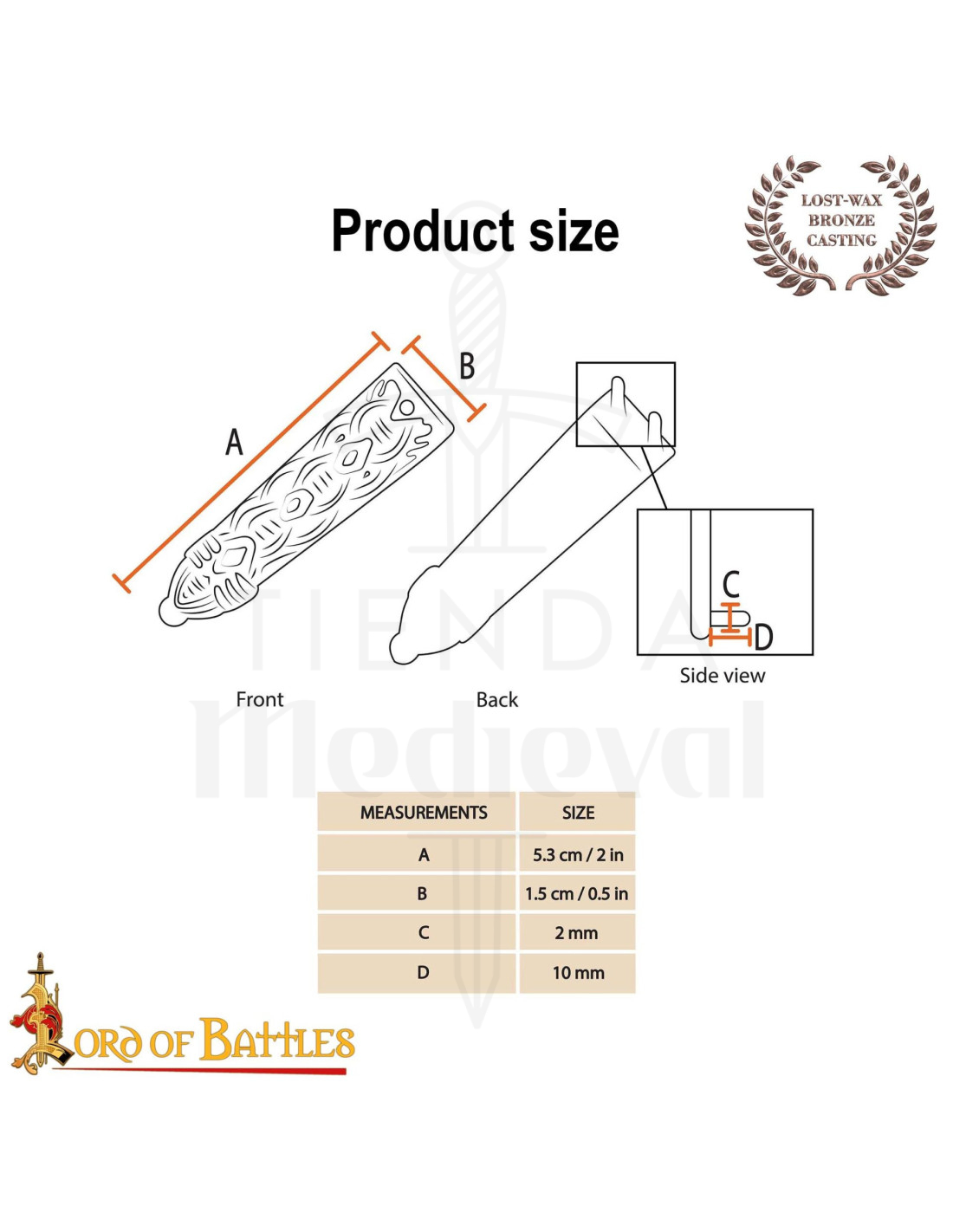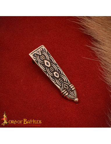 Se cerchi di acquistare Punta per cintura vichinga design nodi, bronzo invecchiato per restaurazioni o per completare un abito vichingo con finitura autentica, questo pezzo offre la combinazione di design fedele e funzionalità che ci si aspetta da accessori ispirati all'Era Vichinga, quando l'ornamentazione segnalava anche status e origine culturale.