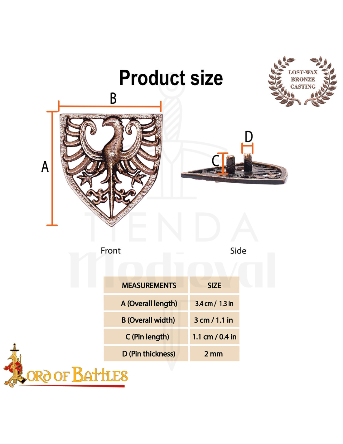 L'aquila, simbolo di forza, nobiltà e autorità divina, trasforma ogni pezzo in più di un ornamento, in un emblema con storia. Se desideri acquistare l'Adorno Aquila araldica in bronzo invecchiato per cinture, troverai in questo modello una miscela di presenza visiva, fissaggio sicuro e finitura autentica che trasforma qualsiasi indumento in una dichiarazione di stile e appartenenza.