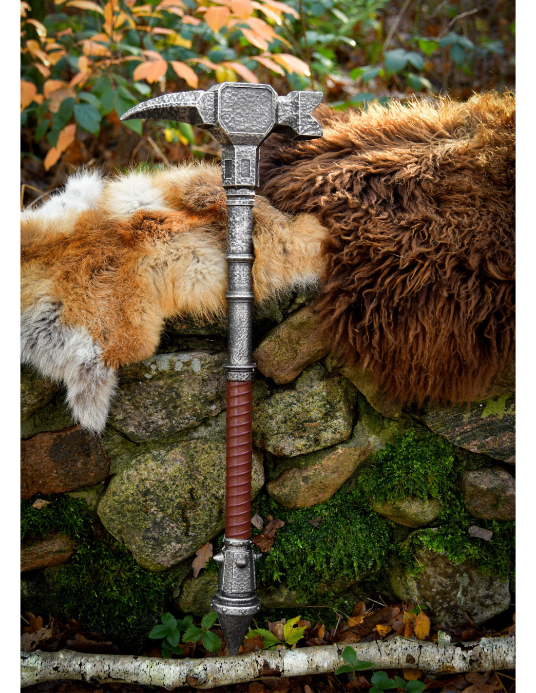 Scegliendo di acquistare il Martello da guerra per LARP, modello Valdrin, ti porti a casa un pezzo che combina presenza scenica e funzionalità pensata per il gioco. Il suo design robusto e dettagliato si adatta a vari costumi e porta quel tocco di eredità bellica che eleva ogni personaggio.