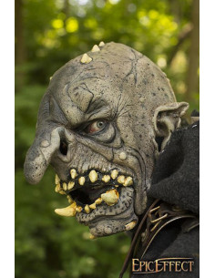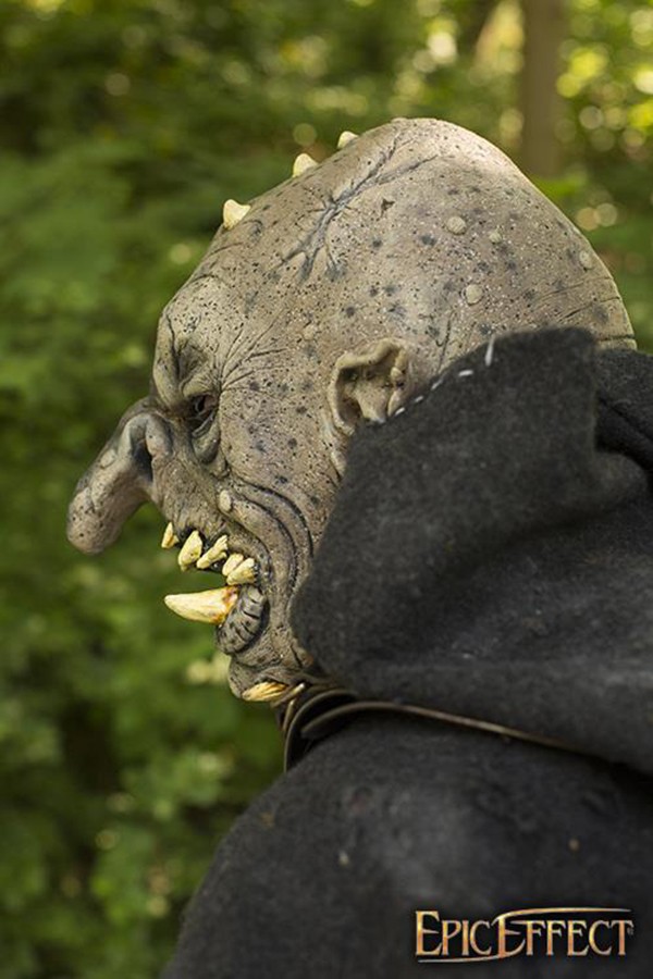 Questa maschera ha le classiche caratteristiche dei troll: naso a bulbo, orecchie a punta e file di denti frastagliati. Proprio come i buchi oscuri che abitano i troll, abbiamo creato una pelle altamente strutturata che sembra pietra. Con molteplici cicatrici, solchi duri e striature, questa maschera mantiene una sensazione minacciosa pur apparendo realistica.
