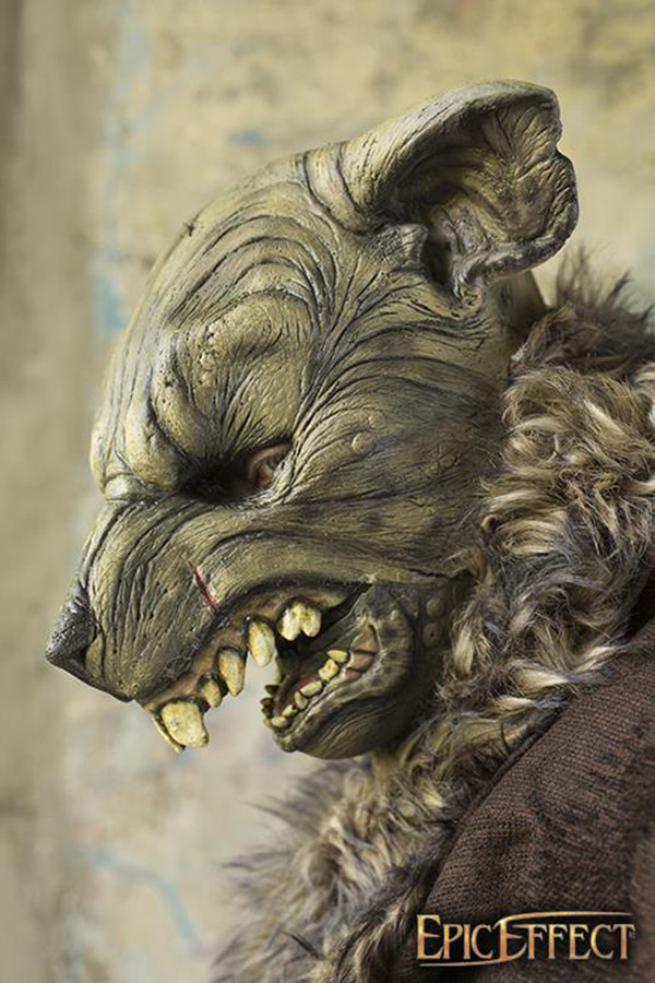 Con un naso lungo e appuntito, denti enormi scoperti in un ringhio minaccioso e orecchie grandi e sempre attente, questa maschera ti darà un aspetto terribilmente realistico. Il suo design dettagliato include cicatrici, pieghe e scanalature che simulano una combinazione tra pelliccia e pelle, con dettagli dipinti a mano che gli conferiscono un tocco unico e autentico.