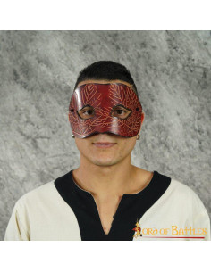 Maschera in pelle rossa con motivi a foglia d'acero in rilievo