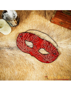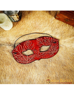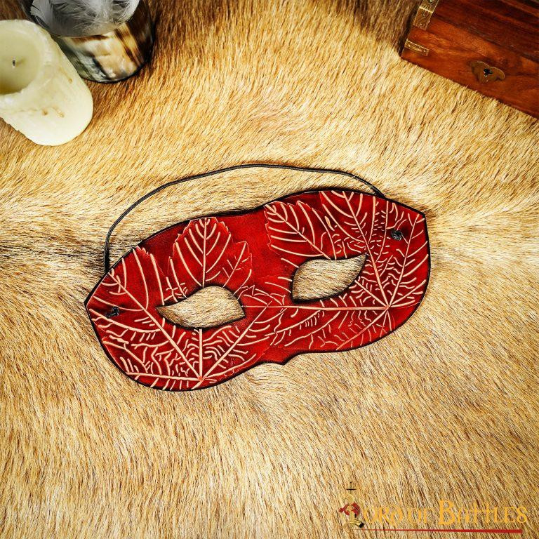 Sei pronto per il tuo prossimo ballo in maschera principesco? Con questa maschera in pelle rossa con motivi a foglia d'acero in rilievo, sarai al centro dell'attenzione!