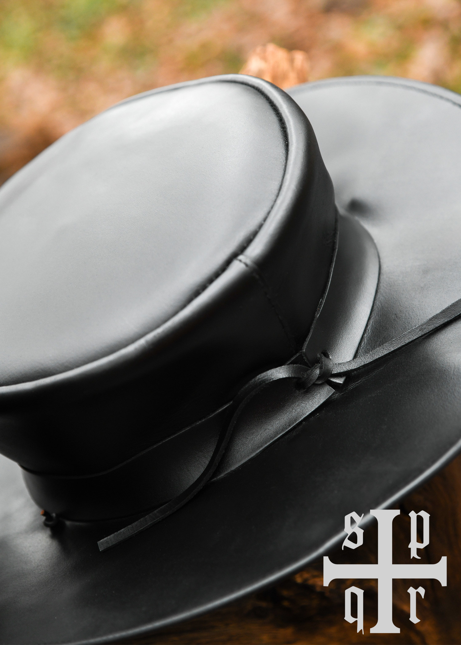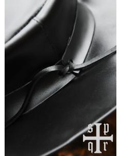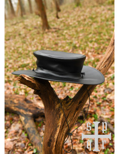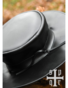 Immagina la sensazione di indossare un cappello di pelle con una larga tesa che non solo ti protegge dal sole, ma aggiunge anche un tocco di mistero al tuo outfit. Il suo design distintivo, con un laccio che fissa il cappello, ti offre comfort e stile, permettendoti di muoverti liberamente mentre ti immergi nel tuo ruolo.